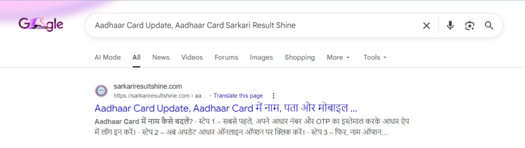 Aadhaar Card Update, Aadhaar Card Sarkari Result Shine