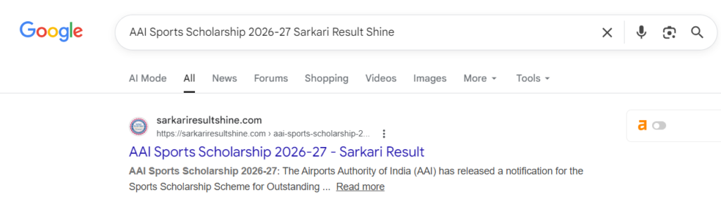 AAI Sports Scholarship 2026-27 Sarkari Result Shine