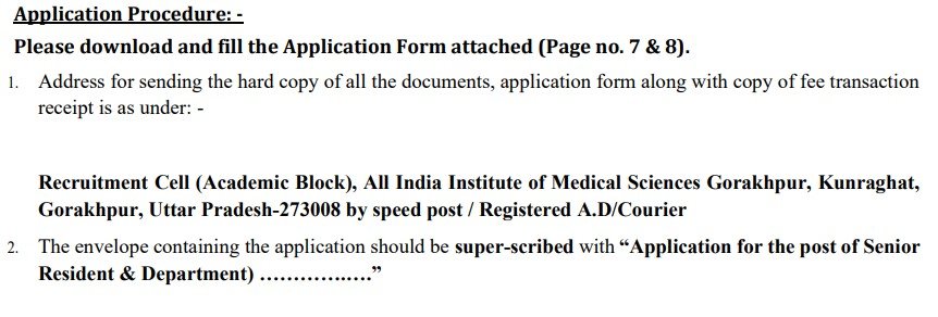 AIIMS Gorakhpur Senior Resident Recruitment 2024: AIIMS Gorakhpur is an apex healthcare Institute, established by the Ministry of Health & Family Welfare, Government of India under the Pradhan Mantri Swasthya Suraksha Yojna (PMSSY). The offline applications are invited from Indian Citizens for the post of Senior Residents under the Govt. of India Central Residency Scheme for the following Departments initially for one (1) year and subsequent extension of two (2) years shall be granted depending on the performance and conduct.