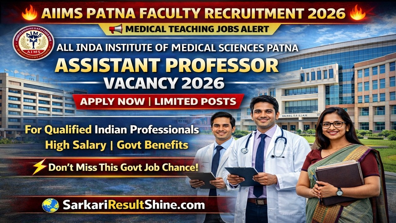 AIIMS Patna Faculty Recruitment 2026: अखिल भारतीय आयुर्विज्ञान संस्थान, पटना (AIIMS Patna) भारत सरकार के स्वास्थ्य एवं परिवार कल्याण मंत्रालय के अधीन एक स्वायत्तशासी संस्थान है। संस्था ने विज्ञापन संख्या 2026/1, दिनांक 20.03.2026 के तहत विभिन्न विभागों में संकाय पदों पर प्रत्यक्ष (सीधी) भर्ती हेतु Online आवेदन आमंत्रित किए हैं।