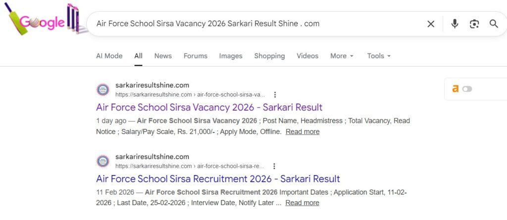 Air Force School Sirsa Vacancy 2026