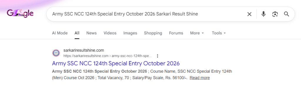 Army SSC NCC 124th Special Entry October 2026 Sarkari Result Shine