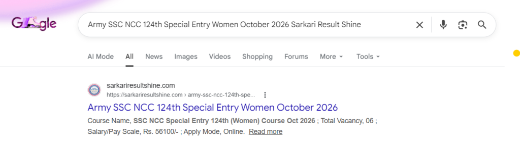 Army SSC NCC 124th Special Entry Women October 2026 Sarkari Result Shine