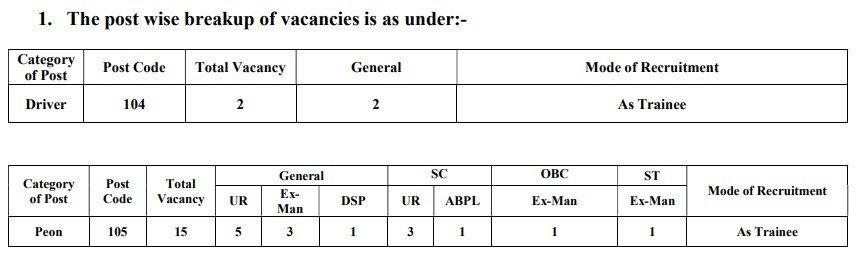 Eligibility: The educational qualification for the post of Peon is 10th pass or equivalent from any educational institution, while for the post of Driver, the qualification is 12th pass along with a valid driving license to drive heavy/light vehicles in hilly areas.