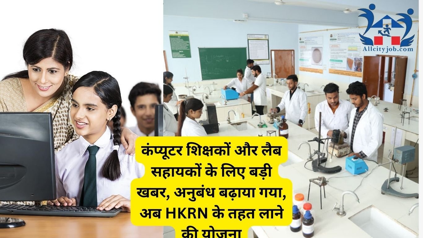 कंप्यूटर शिक्षकों और लैब सहायकों के लिए बड़ी खबर: हरियाणा में सरकारी स्कूलों में तैनात अनुबंध पर लगे शिक्षकों और लैब सहायकों के अनुबंध की अवधि एक साल बढ़ा दी गई है। सभी 4200 कंप्यूटर शिक्षकों और लैब सहायकों को हरियाणा कौशल रोजगार निगम के तहत लाया जाएगा।