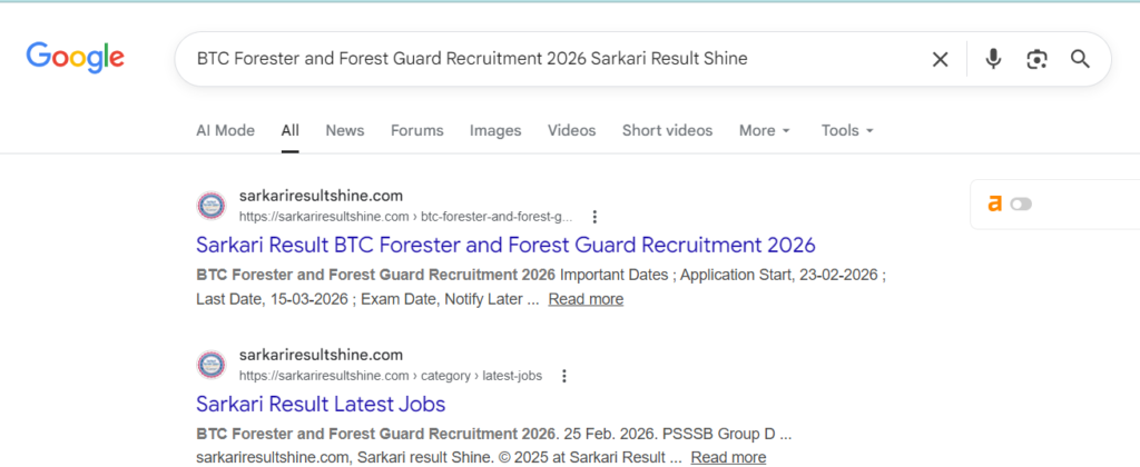 BTC Forester and Forest Guard Recruitment 2026 Sarkari Result Shine