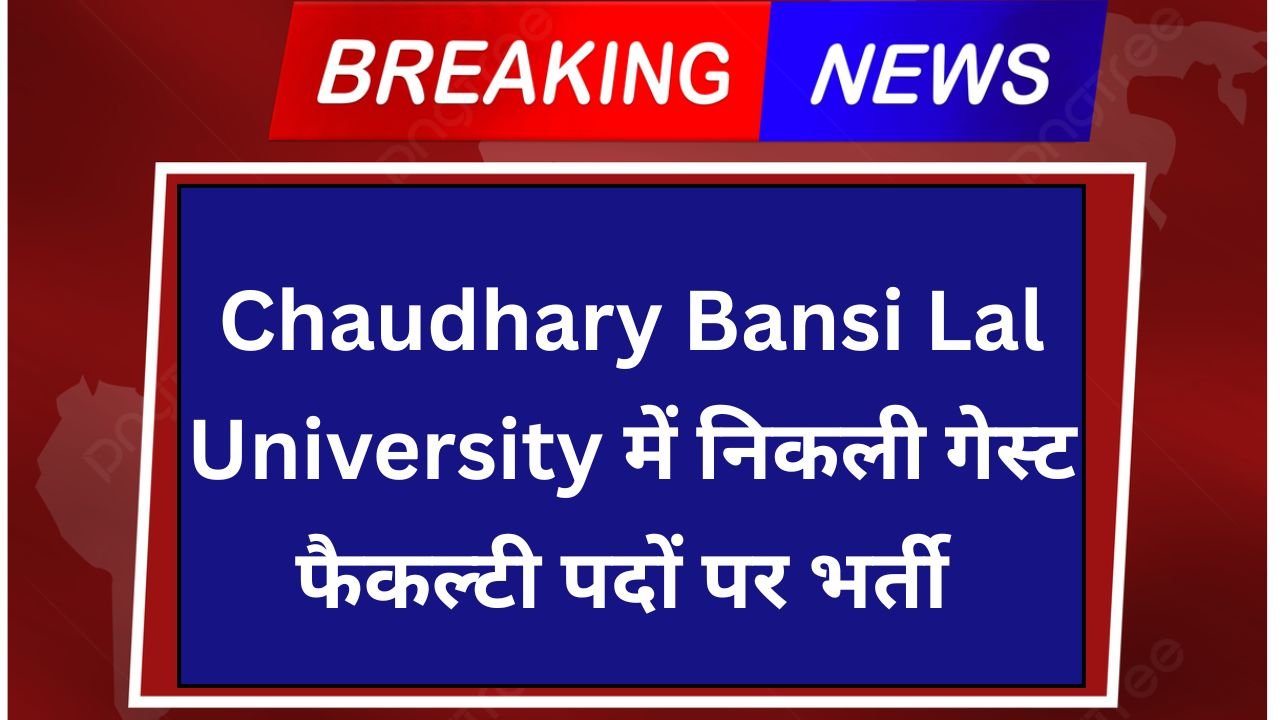 CBLU Bhiwani Guest Faculty Recruitment 2026: Chaudhary Bansi Lal University द्वारा वर्ष 2026 के लिए गेस्ट फैकल्टी (Guest Faculty) पदों पर भर्ती हेतु आधिकारिक अधिसूचना जारी की गई है। यह भर्ती वॉक-इन इंटरव्यू के माध्यम से की जाएगी, जिसमें योग्य उम्मीदवार सीधे इंटरव्यू में भाग लेकर चयन प्रक्रिया में शामिल हो सकते हैं। यह अवसर विशेष रूप से उन उम्मीदवारों के लिए है जो उच्च शिक्षा क्षेत्र में अध्यापन कार्य करना चाहते हैं और UGC/NCAHP के मानकों के अनुरूप पात्रता रखते हैं।