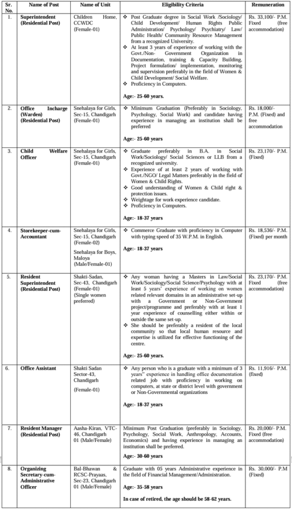 - Send Application Form: Office of Chandigarh Child & Women Development Corporation, Additional Town Hall Building, 3rd Floor, Sector-17C, Chandigarh