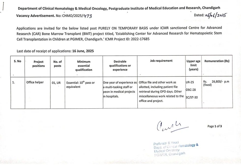 Chandigarh PGI Office Helper Vacancy 2025 How To Apply
