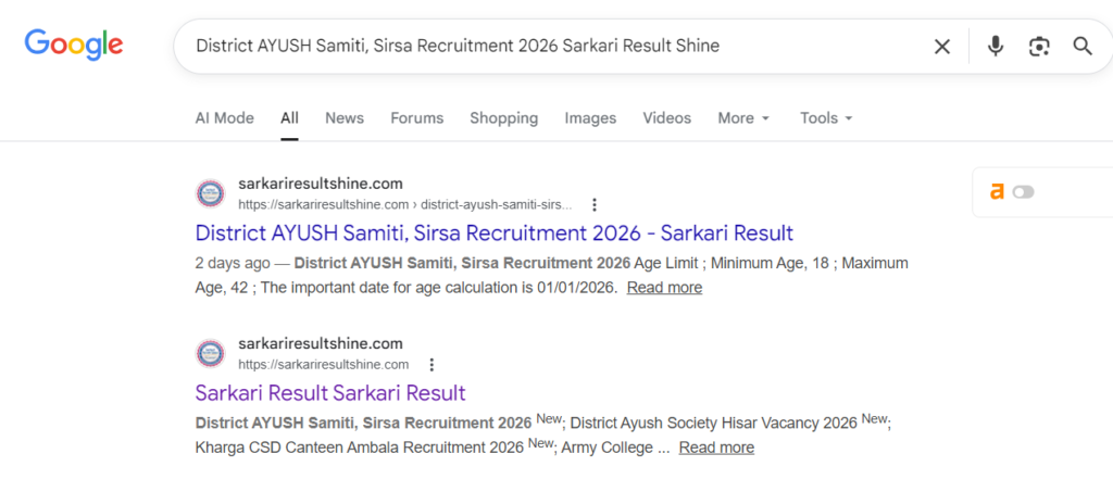 Latest JobLatest JobsLatest UpdateOffline FormDistrict AYUSH Samiti, Sirsa Recruitment 2026By Brala VijendraPublished on: February 27, 2026 District AYUSH Samiti, Sirsa Recruitment 2026 Sarkari Result ShineBrala VijendraVijendra Singh is the senior editor and founder of allcityjob.com and has been working in digital media for 2 years.
