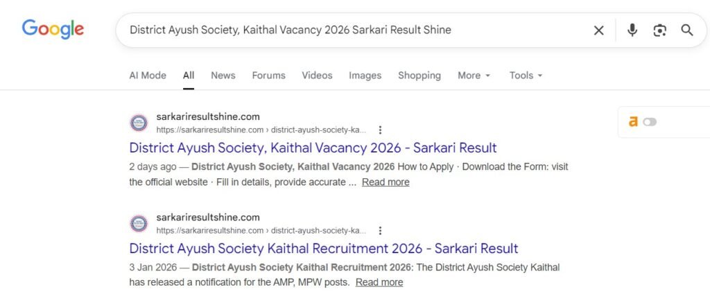 District Ayush Society, Kaithal Vacancy 2026 Sarkari Result Shine
