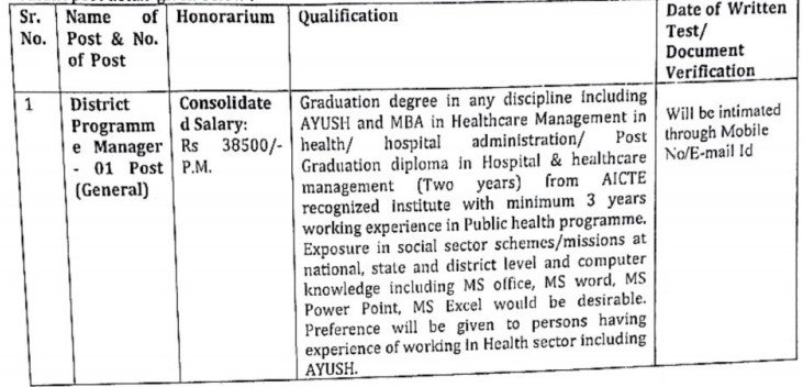District Ayush Society Narnaul Recruitment 2024: The District Ayush Society, Mahendragarh at Narnaul has recently released a notification for the recruitment of District Program Manager posts. All interested and eligible candidates should read the full notification carefully and submit their applications before the specified deadline.