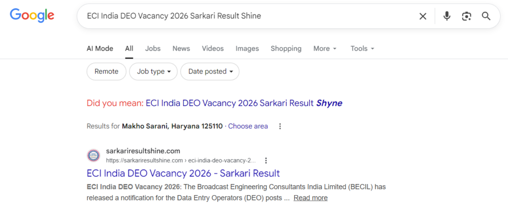 ECI India DEO Vacancy 2026 Sarkari Result Shine