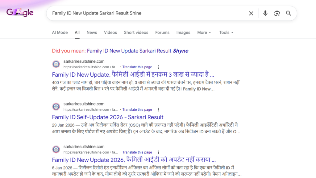 Family ID New Update Sarkari Result Shine