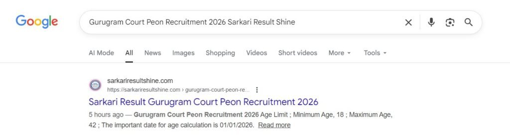 Gurugram Court Peon Recruitment 2026 Sarkari Result Shine