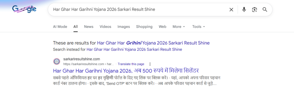 Har Ghar Har Garihni Yojana 2026 Sarkari Result Shine