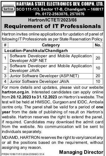 | Post Name | Hartron IT Professionals Recruitment 2023 |