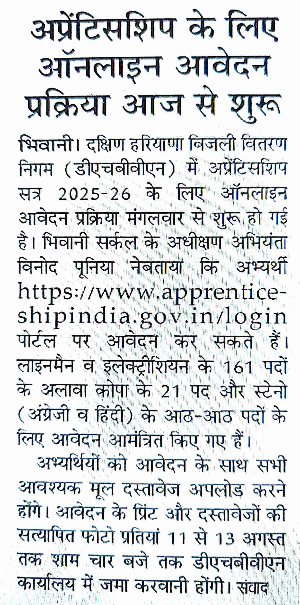 Haryana Bijli Board Vacancy 2025: The Uttar Haryana Bijli Vitran Nigam Limited has released a notification to fill 198 posts of Computer Operator, Electrician, and Lineman. All interested eligible candidates are advised to read the entire notification carefully and submit their application before the prescribed deadline.