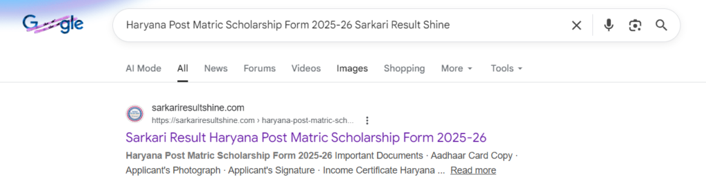 Haryana Post Matric Scholarship Form 2025-26 Sarkari Result Shine
