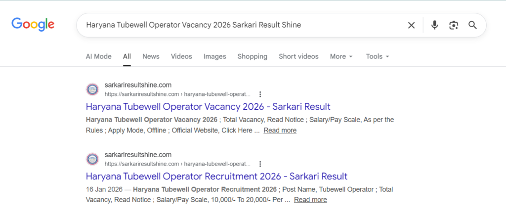 Haryana Tubewell Operator Vacancy 2026 Sarkari Result Shine