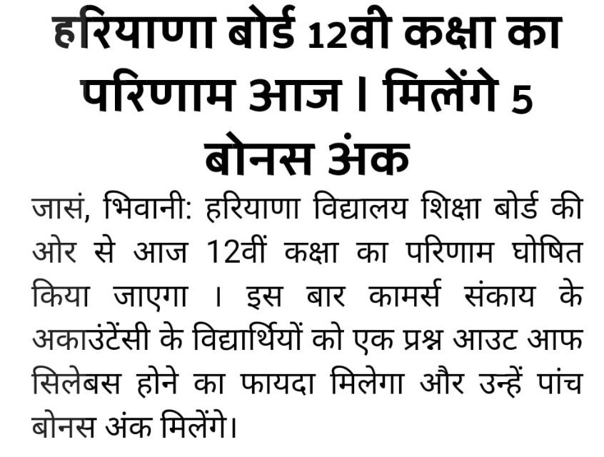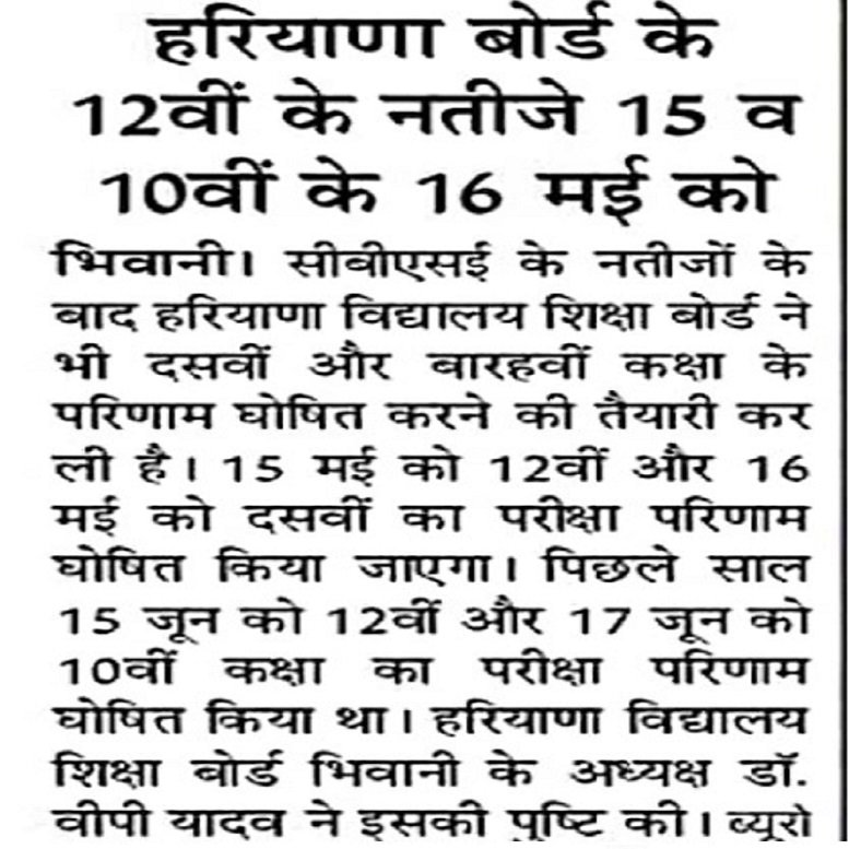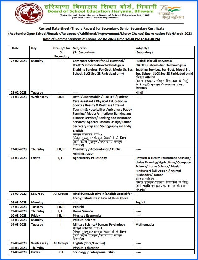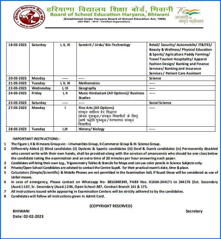 HBSE 10TH 12TH Secondary Examination July-2023 Exam Result