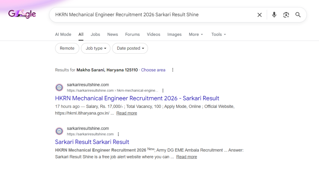 HKRN Mechanical Engineer Recruitment 2026 Sarkari Result Shine