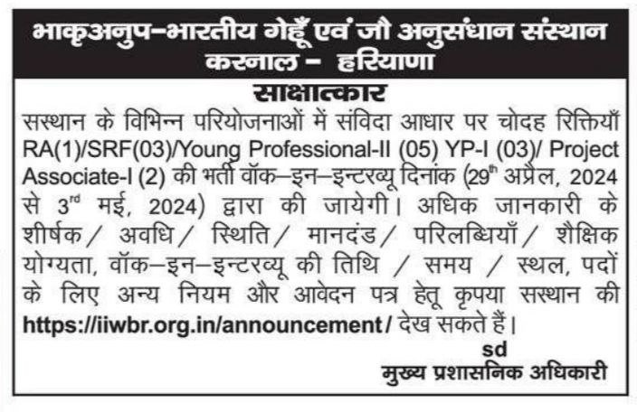ICAR Karnal Bharti 2024: Short Summary : The Central Soil Salinity Research Institute has recently released a notification for the recruitment of Young Professional posts in 2024. All interested and eligible candidates should read the complete notification carefully and submit your applications before the specified deadline.