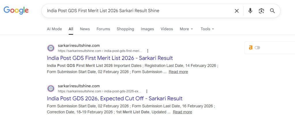 India Post GDS First Merit List 2026 Sarkari Result Shine