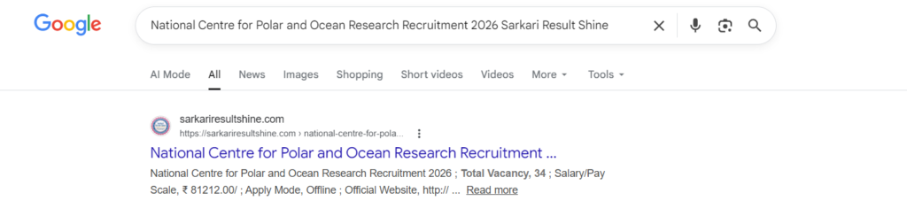 National Centre for Polar and Ocean Research Recruitment 2026 Sarkari Result Shine