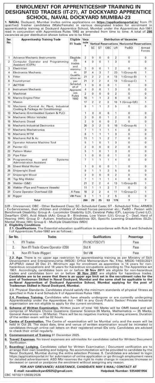 Naval Dockyard Apprentice Vacancy 2025, Apply Online