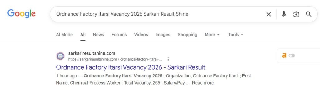 Ordnance Factory Itarsi Vacancy 2026 Sarkari Result Shine