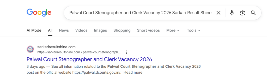 Palwal Court Stenographer and Clerk Vacancy 2026 Sarkari Result Shine