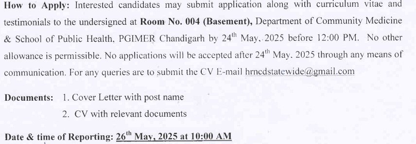 PGI Chandigarh Field Supervisor, Office Assistant Recruitment 2025 How to Apply