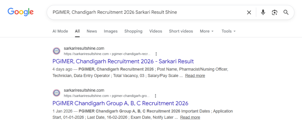PGIMER, Chandigarh Recruitment 2026 Sarkari Result Shine