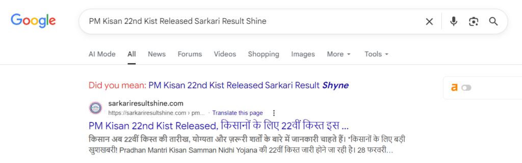 PM Kisan 22nd Kist Released Sarkari Result Shine