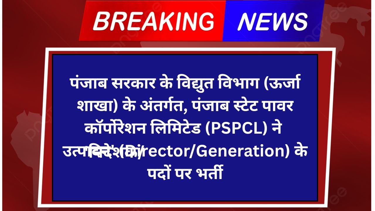 PSPCL Director (Generation) Recruitment 2026: Punjab सरकार के Power Department (Energy Branch) के तहत Punjab State Power Corporation Limited (PSPCL) ने Director/Generation पद के लिए आवेदन आमंत्रित किए हैं। यह एक उच्च स्तर (Senior Level) की सरकारी नौकरी है, जिसमें चयनित उम्मीदवार को बिजली उत्पादन से जुड़े महत्वपूर्ण कार्यों और प्रबंधन की जिम्मेदारी संभालनी होगी। यह अवसर खासतौर पर अनुभवी उम्मीदवारों के लिए है जो पावर सेक्टर में अपना करियर आगे बढ़ाना चाहते हैं।