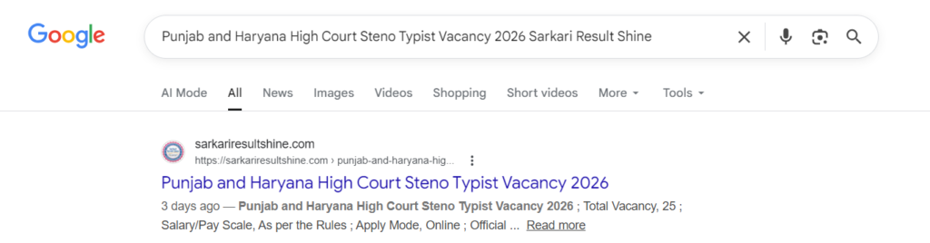 Punjab and Haryana High Court Steno Typist Vacancy 2026 Sarkari Result Shine