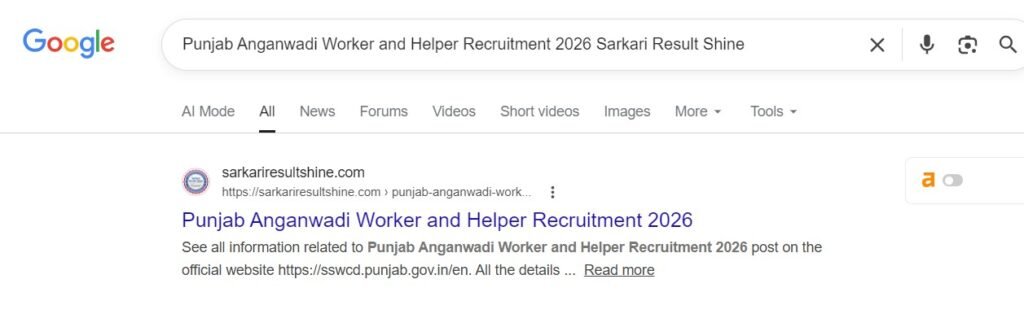 Punjab Anganwadi Worker and Helper Recruitment 2026 Sarkari Result Shine