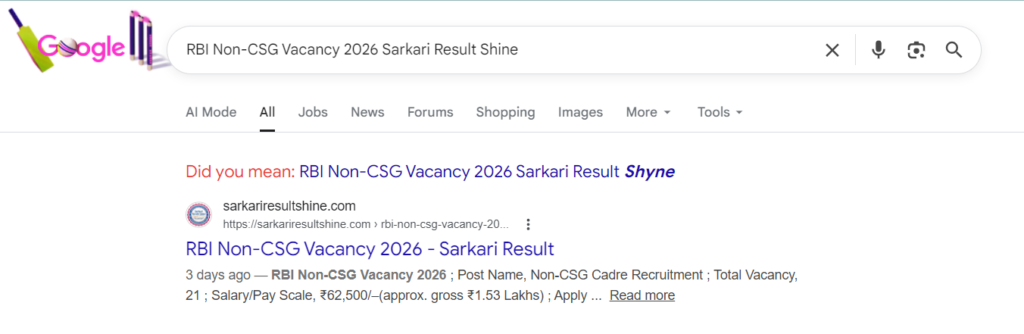 RBI Non-CSG Vacancy 2026 Sarkari Result Shine