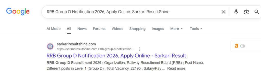 RRB Group D Notification 2026, Apply Online. Sarkari Result Shine