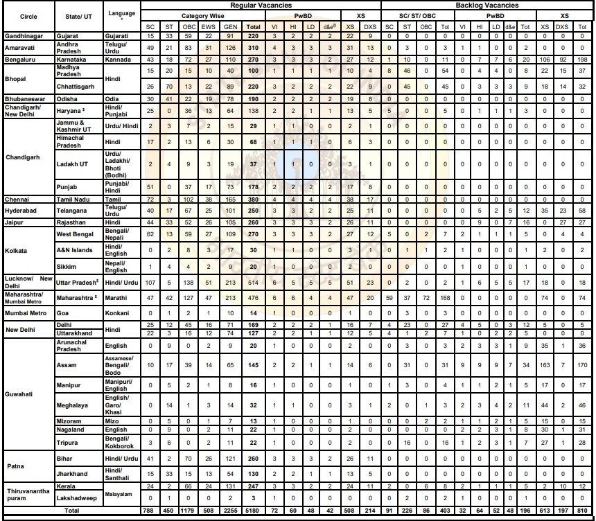 SBI Junior Associate Recruitment 2025: Applications are invited from eligible Indian Citizens for appointment as Junior Associate (Customer Support & Sales) in clerical cadre in State Bank of India. Candidates can apply for vacancies in one State/UT only. Candidates can appear for the test only once under this recruitment project. The candidates applying for vacancies of aparticular State/UT, should be proficient (reading, writing, speaking and understanding) in the specified opted local language of that State/UT (mentioned in the under vacancy table against each state/UT). The test for knowledge of the specified local language will be conducted as a part of selection process. It will be conducted after qualifying the online Main examination but before joining the Bank. Candidates who fail to qualify this test will not be offered appointment. Candidates who produce 10th or 12th standard mark sheet/ certificate evidencing having studied the specified opted local language will not be required to undergo the language test. There is no provision for Inter Circle Transfer / Inter State Transfer for Junior Associates to be recruited. However, Intra State transfer between two Circles situated in the same State. Delhi Circle & Chandigarh Circle in Haryana State only, Delhi Circle & Lucknow Circle in Uttar Pradesh State only, and Mumbai Metro Circle & Maharashtra Circle in Maharashtra State only will be permitted.